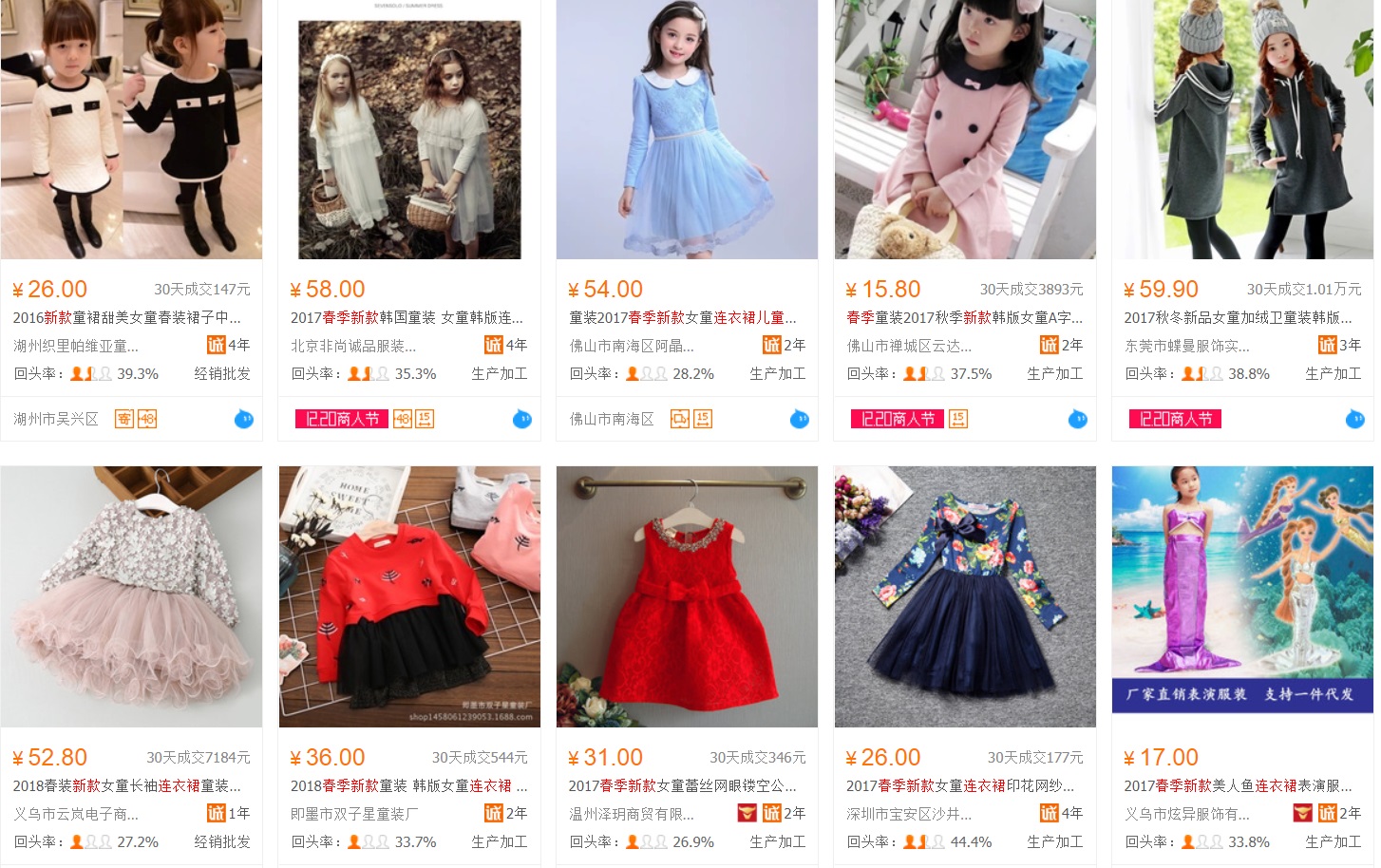 多めに1元=30円で計算すると、左端のモノトーンのワンピースは、