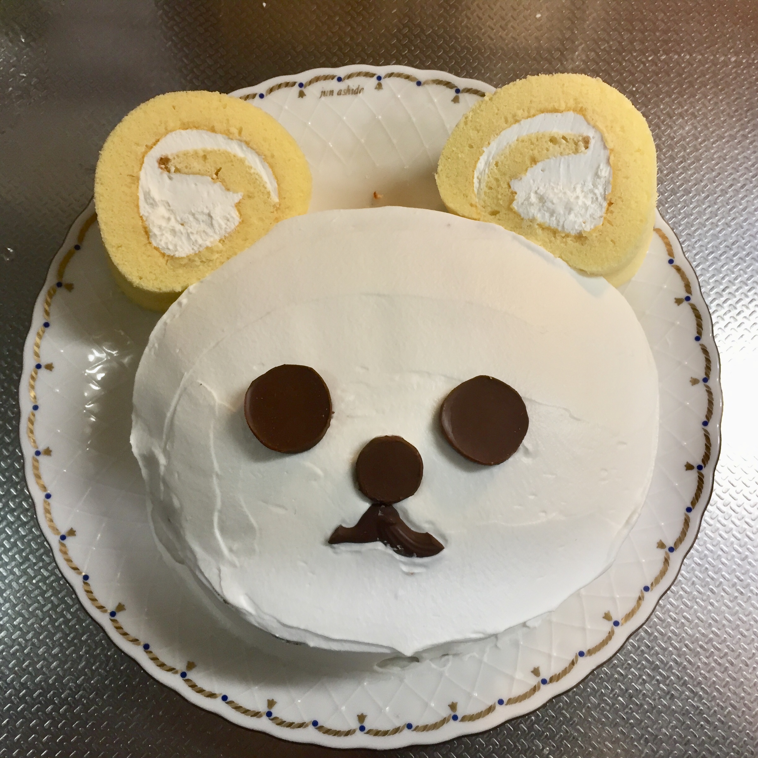 「白いリラックマだからね!」と言われていたので、生クリームを塗ったらいいやん♪と思ったら、デコレーションする時に画像検索してみると、薄らと茶色だったという・・・