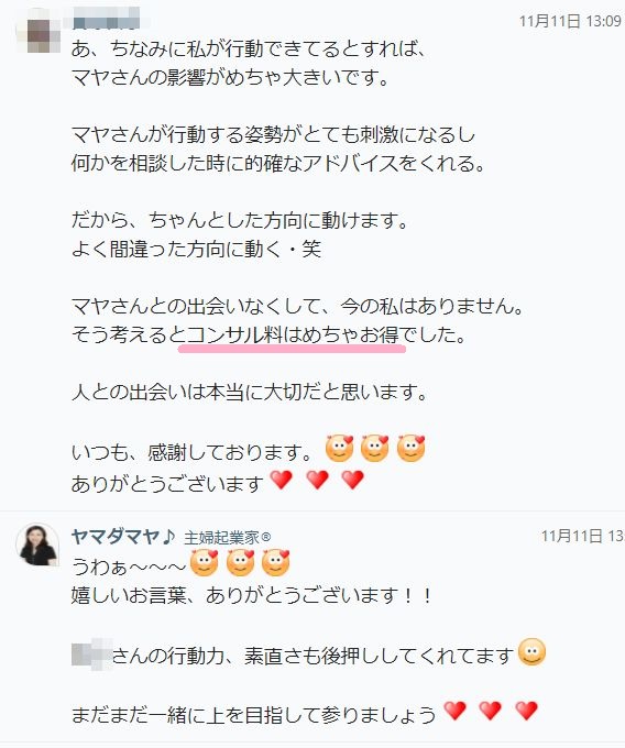 覚悟を決めて、本講座を受講されたBさんからとても嬉しいチャットが届きました。