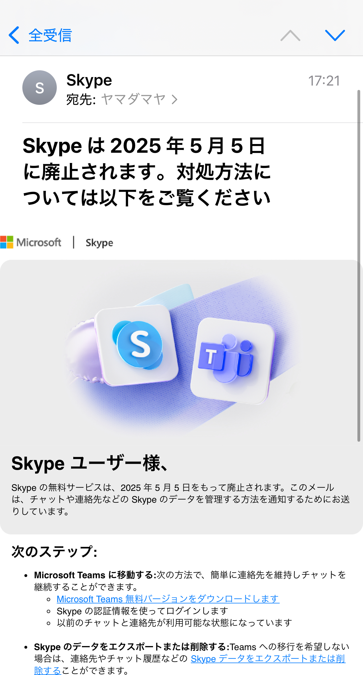 ついにスカイプが廃止されるんですって!!